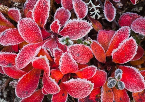 Frost covered leaves of Bearberry.